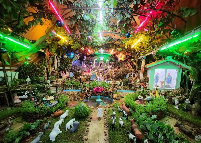 In addition, seasonal fruits such as watermelon, melon, pineapple, and banana are commonly included. When it comes to ornaments, these allow for personal creativity. While some families prefer to keep their nativity scenes strictly traditional, others incorporate modern Christmas decorations. Traditionally, nativity scenes are assembled under a small cave or within a wooden and straw structure representing the stable.