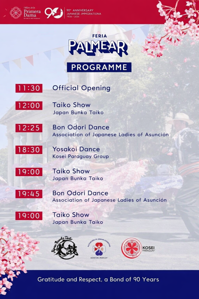 The first Palmear Fair of 2026 will take place on 18 April along Palma Street in the historic centre of Asunción. This edition will feature a Japanese theme, as this year marks 90 years since the arrival of the first Japanese immigrants in Paraguay. The event will run from 11:00 to 23:00 and forms part of a wider programme of commemorative activities taking place throughout April.