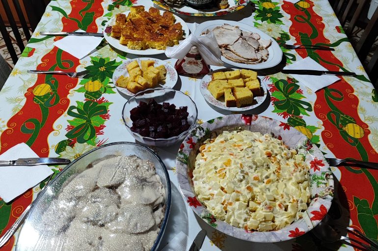 Russian salad is also a staple of the season. Rolled beef or chicken dishes, influenced by foreign cuisines, are increasingly common as well. Given the sheer amount of food prepared, leftovers are inevitable. Dishes like vitel toné, Russian salad, and even asado keep well in the refrigerator, meaning that the days following Christmas are often spent finishing leftovers and gathering once again around the same table.