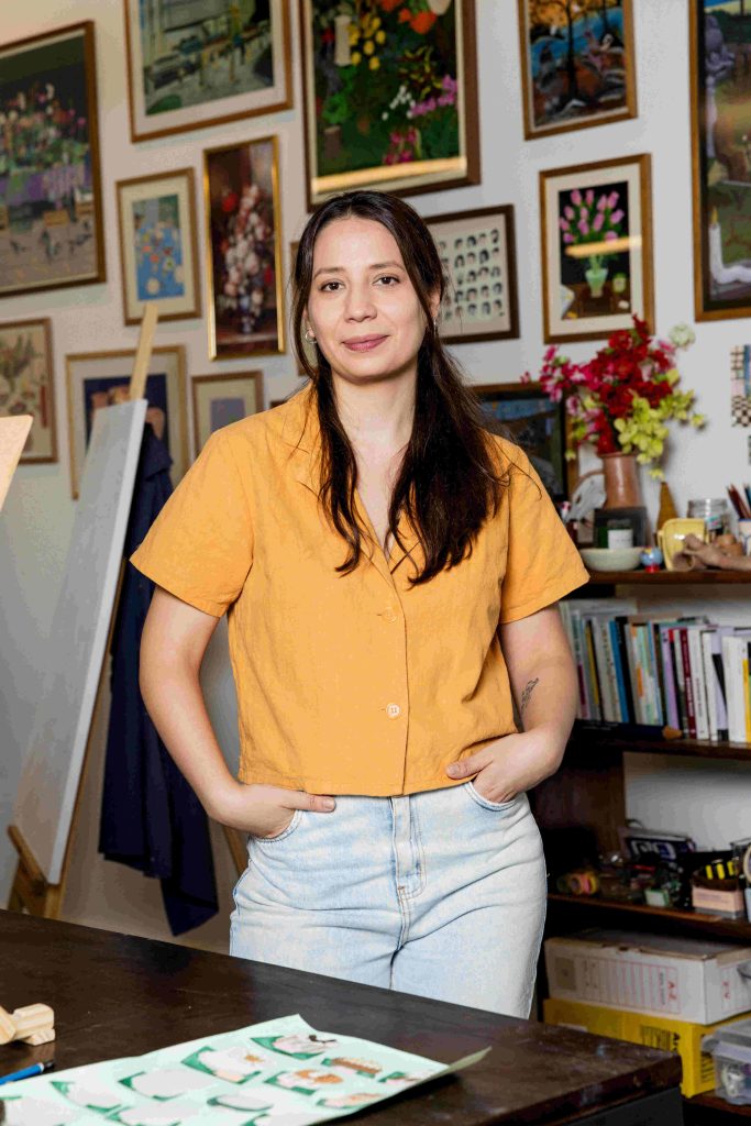 “I studied graphic design, and that was where I first connected with art,” she explains in a conversation with The Asunción Times. “Through design projects, I gradually became more interested in creating my own images.”