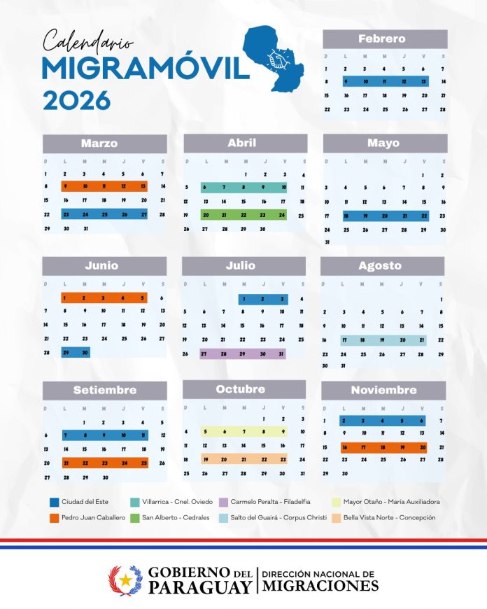 The National Directorate of Migration (DNM) has released the preliminary 2026 calendar for its MigraMóvil programme. The initiative is designed to bring essential migration documentation services directly to communities across Paraguay. The programme targets both the general public and newcomers community. The project’s purpose is to allow individuals to plan ahead for residency applications and related procedures.